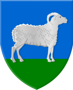 De blazoenering van het wapen is: in azuur (blauw) een omgewende stappende ram van zilver, lopend op een schildvoet van sinopel (groen).