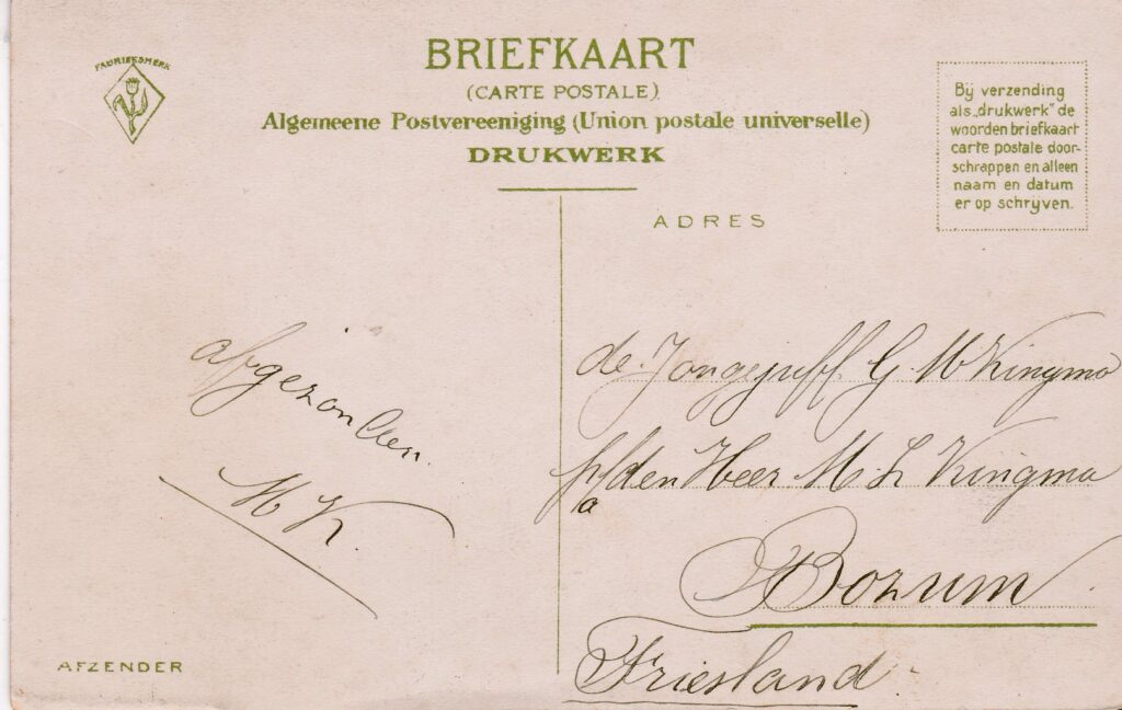 Er zijn ook kaarten geschreven, naar Sjoukje Syperda. Zij was dus de halfzuster van Jan de Waard.