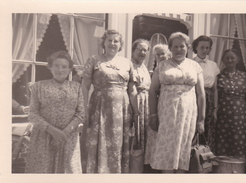 ?? Sjoukje Hijlkema-Haagsma ( de beppe fan Jan Hijlkema, Zwaantje de Jong wenne oan de achterkant fan Waltawei 16—Janke de Boer(Wiebrens Janke) —Tryn Wijnia-de Jong (mem fan Ulbe)—Detsje Keuning-Joustra (dr.Miedemastrjitte 5—chauffeur Sypersma—Hinke Huitema- Mellina Huitema-Damstra.
