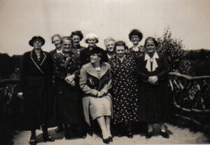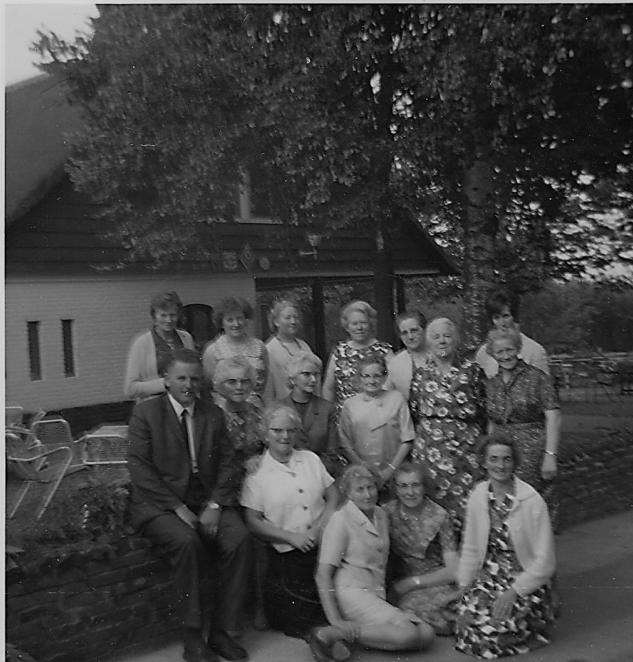 Vrouwenver Wees een Zegen 1962 Boven v,l.n.r: Marijke Dijkstra, Anne de Vries, frou  Albada, frou Groen, Geertje Reitsma , Lipkje v/d Werf, 2e rij chauffeur Sijpersma Teatske Siderius, frou Klaassen, Hinke Huitema, Marie Koopmans, Rinske Breeuwsma voorste rij: Detsje Keuning, Tiete Breeuwsma, frou de Witte  en Gaiske Koopmans.