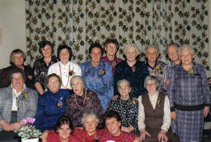 frou Renske Breeuwsma,  achter Marijke Dijkstra, Geertje Reitsma, Tiete Breeuwsma, Roelofke Groen, .?… frou Klaassen. frou Keuning, frou Wijnja, en ….