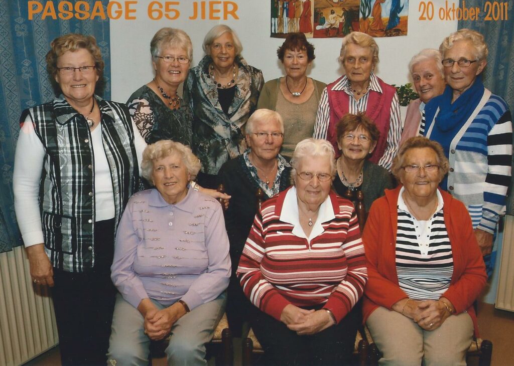 v.l.n.r: Anneke Castelein, Pietsje de Vries, Swaantsje Kroes, vr Nauta, Tine Koopmans, Janne Hemstra, Piet Visser Zittend: vr de Vries Ine v Berkum, Jantsje Jaarsma, Annie de Boer en Wimke Tjeerdsma. Passage 65 jaar 20-10-2011